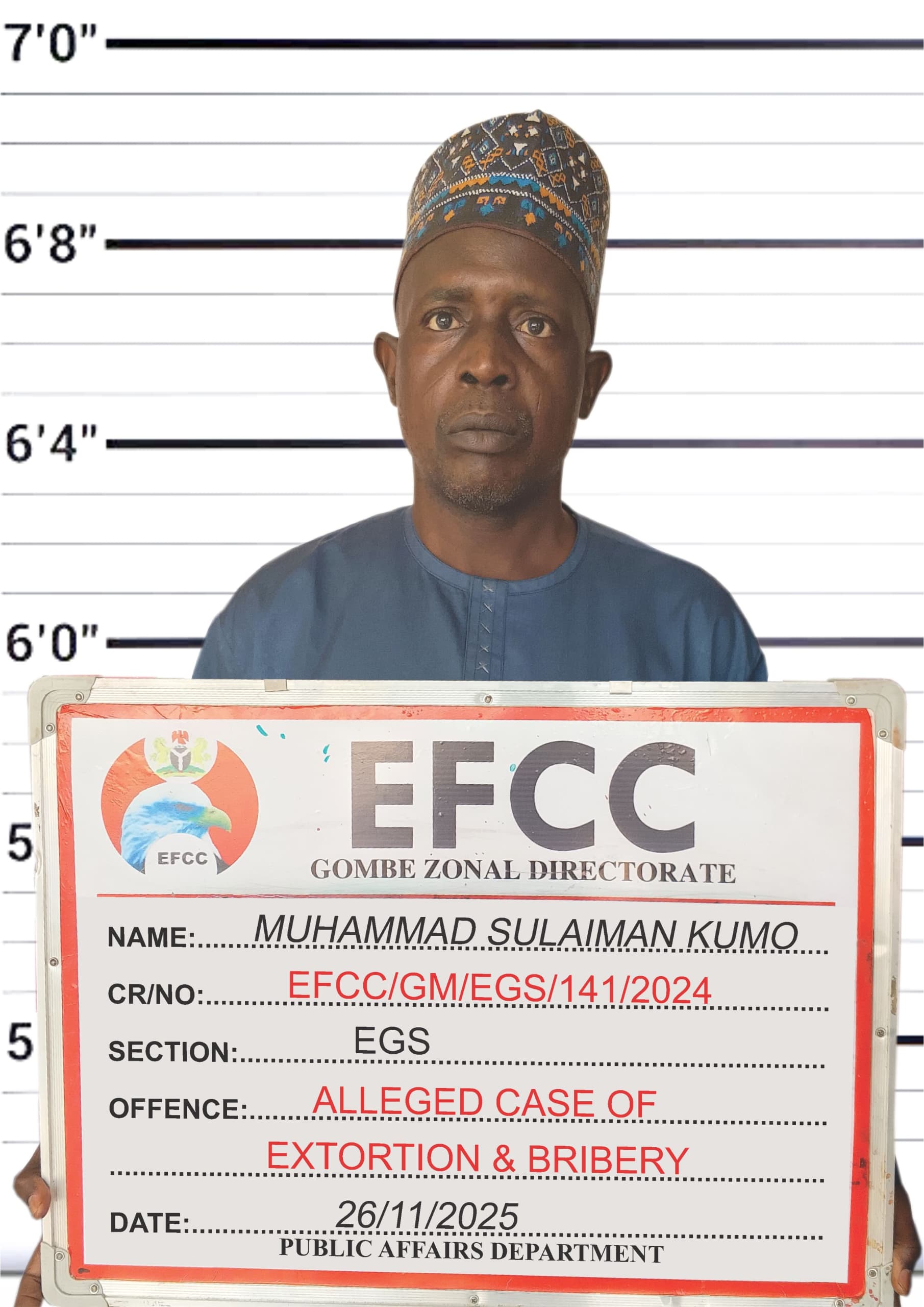 The Economic and Financial Crimes Commission, EFCC on December 3, 2025 arraigned Mohammed Suleiman Kumo before Justice H.H. Kereng of the Gombe High Court sitting in Gombe.